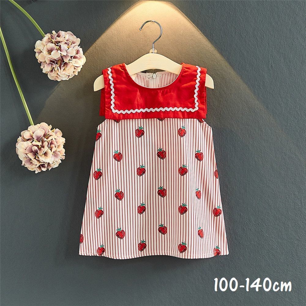 ワンピース キッズ 子供 ジュニア ボックスカラー ノースリーブ ラウンドネック ストライプ イチゴ イラスト かわいい 女の子 プラスナオ Paypayモール店 通販 Paypayモール